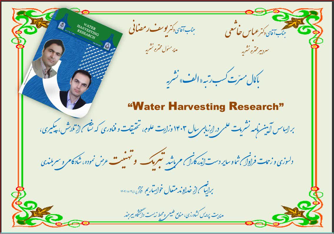 تبریک کسب رتبه علمی «الف» نشریه "Water harvesting research" در ارزیابی وزارت علوم، تحقیقات و فناوری ۱۹ آبان ۱۴۰۴ | ۰۸:۳۹ کد : ۳۲۴۰۵ اخبار دانشکده ارسال به دیگران نام شما ایمیل شما ایمیل دریافتکننده ارسال انصراف تعداد بازدید:۳۳