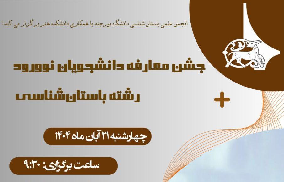 در روز چهارشنبه ۲۱ آبانماه ۱۴۰۴، انجمن علمی باستانشناسی دانشگاه بیرجند با همکاری دانشکده هنر، جشن معارفه دانشجویان نو ورود رشته باستانشناسی را در باغ جهانی اکبریه برگزار کرد. در این برنامه، ضمن خوشآمدگویی به دانشجویان جدید، معرفی رشته، اهداف آموزشی، فعالیتهای انجمن و زمینههای پژوهشی انجام شد. همچنین دانشجویان از بخشهای مختلف باغ و موزه باستانشناسی اکبریه بازدید کردند و با آثار تاریخی و فرهنگی منطقه آشنا شدند. این گردهمایی صمیمی، فرصتی برای همافزایی و آشنایی بیشتر دانشجویان با میراث فرهنگی بیرجند و فضای علمی رشته باستانشناسی فراهم آورد.