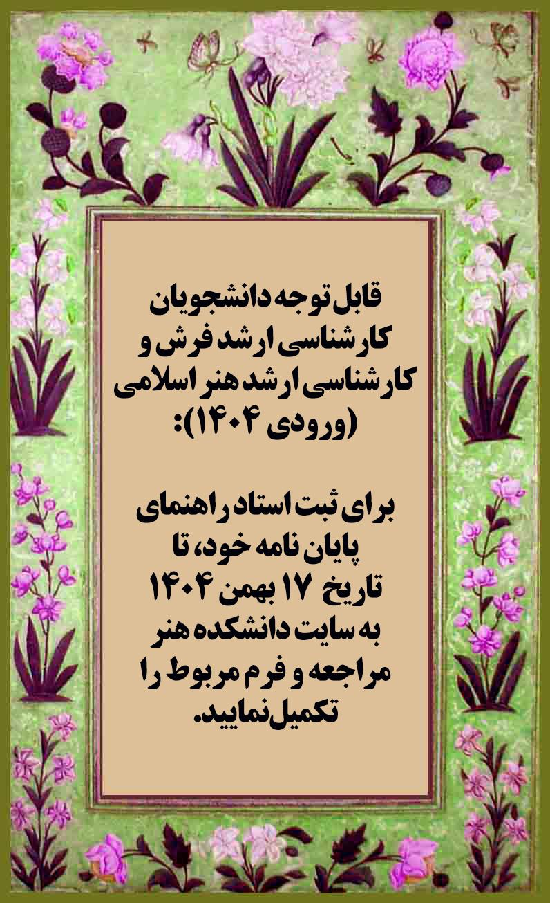 قابل توجه دانشجویان کارشناسی ارشد فرش و هنر اسلامی (ورودی 1404):