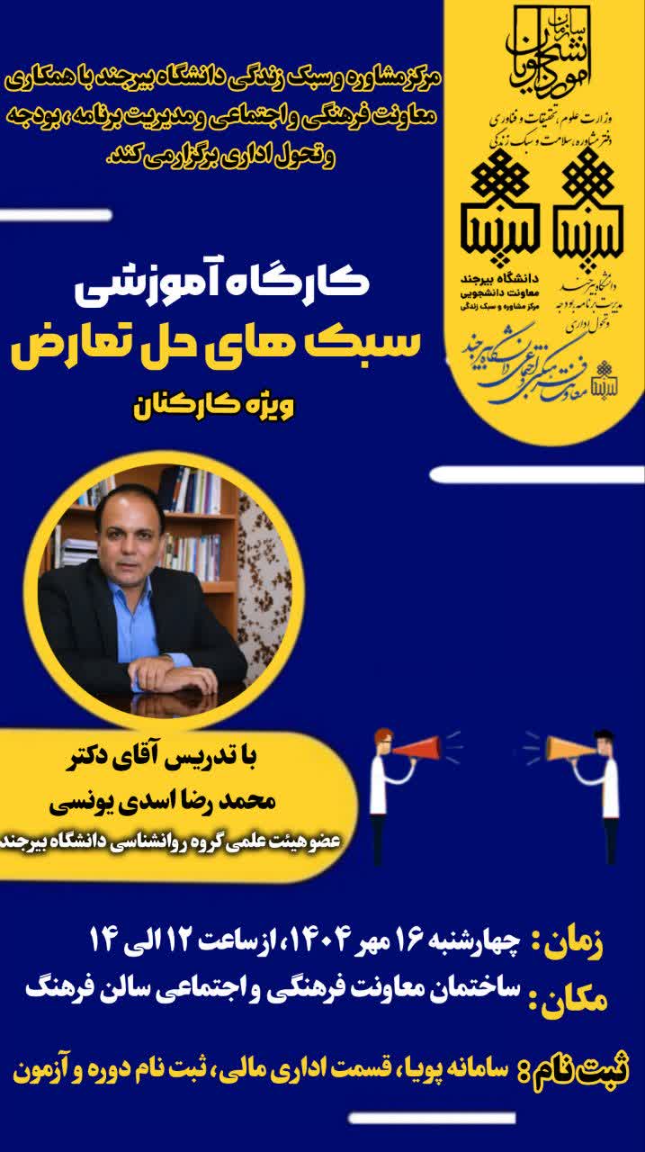 کارگاه آموزشی «سبکهای حل تعارض» ۱۳ مهر ۱۴۰۴ | ۱۰:۰۷ کد : ۳۲۶۸۶ اطلاعیه ارسال به دیگران نام شما ایمیل شما ایمیل دریافتکننده ارسال انصراف تعداد بازدید:۱۱