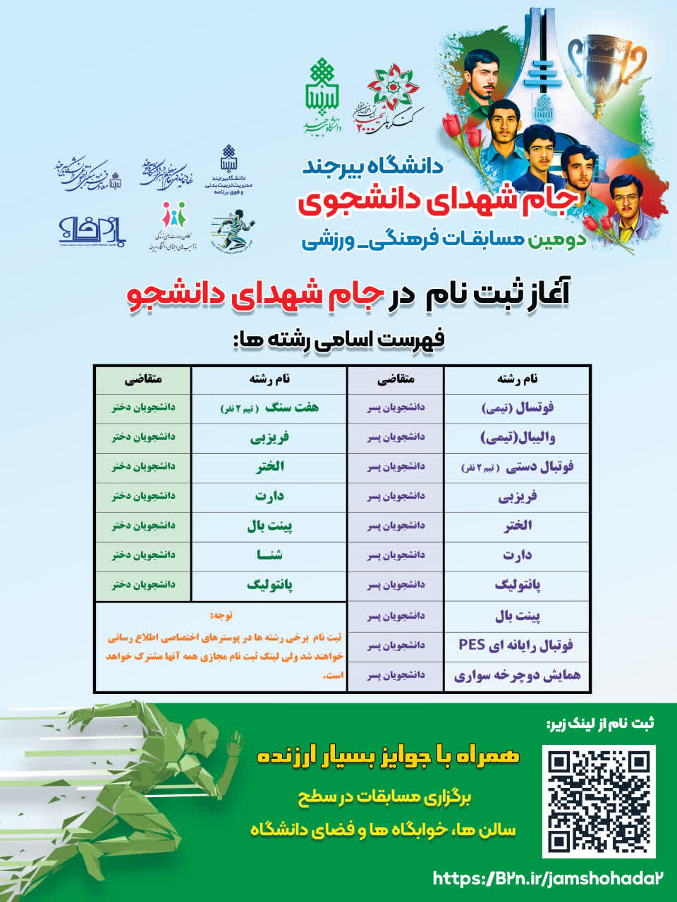 آغاز ثبت نام در رشته های متنوع ورزشی در دانشگاه بیرجند، دومین دوره جام شهدای دانشجوی دانشگاه ۲۹ مهر ۱۴۰۴ | ۰۷:۴۸ کد : ۳۲۱۷۷ اخبار اطلاعیه ها ارسال به دیگران نام شما ایمیل شما ایمیل دریافتکننده ارسال انصراف تعداد بازدید:۱۷