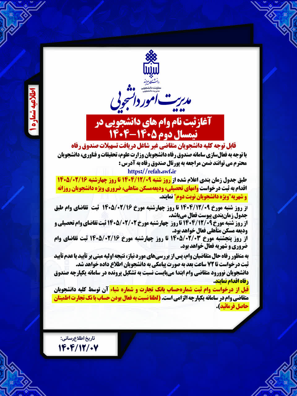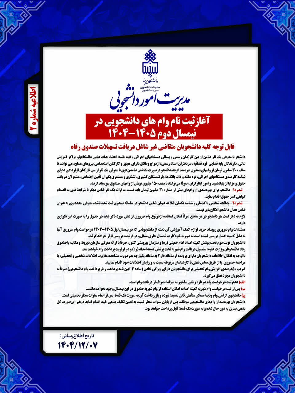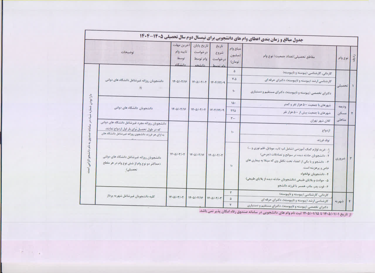 آغاز ثبت نام وام دانشجویی در نیمسال دوم سال تحصیلی ۱۴۰۴_۱۴۰۵