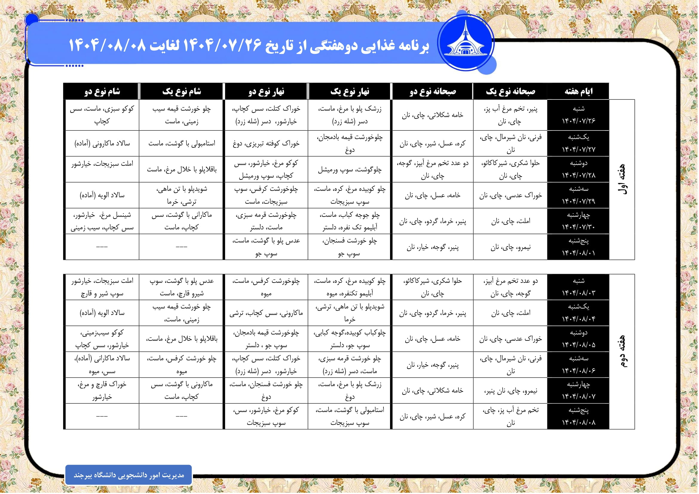 برنامه غذایی جاری تعداد بازدید:۴۶۹۰۷ ارسال به دیگران نام شما ایمیل شما ایمیل دریافتکننده ارسال انصراف