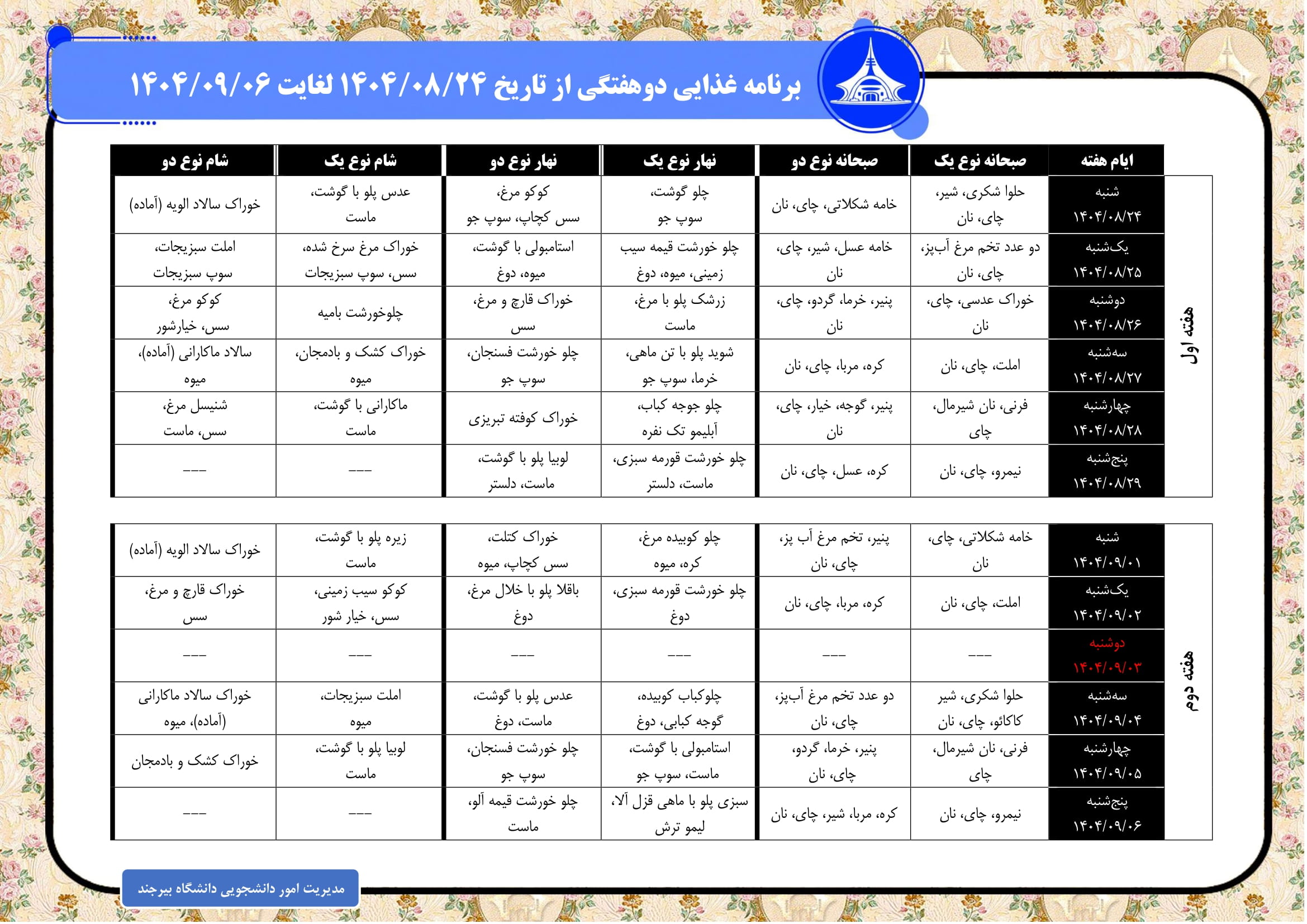 برنامه غذایی جاری تعداد بازدید:۴۹۹۳۵ ارسال به دیگران نام شما ایمیل شما ایمیل دریافتکننده ارسال انصراف