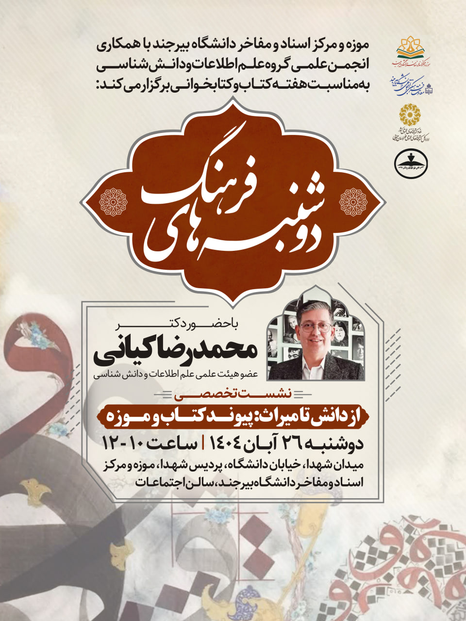 نشست تخصصی: از دانش تا میراث: پیوند کتاب و موزه ۲۱ آبان ۱۴۰۴ | ۱۳:۴۱ کد : ۳۲۴۴۷ اطلاعیه ارسال به دیگران نام شما ایمیل شما ایمیل دریافتکننده ارسال انصراف تعداد بازدید:۲۹