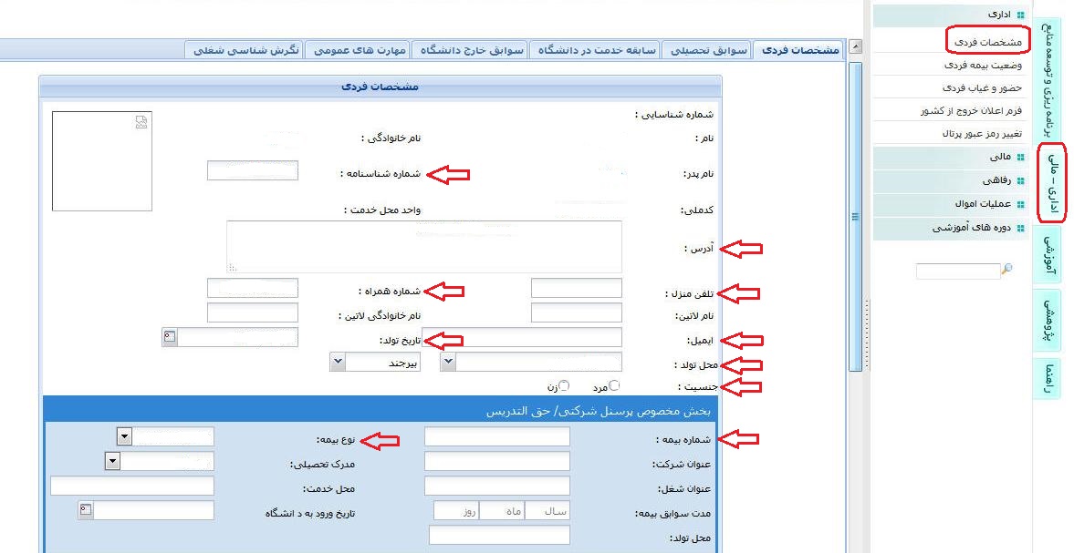 اساتید محترم مدعو ابتدا در قسمت اداری مالی، مشخصات فردی را کامل سپس به بررسی فرم آموزانه اقدام نمایند.