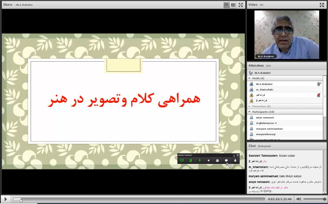 سخنرانی مجازی دکتر بیدختی عضو هیات علمی دانشکده هنر با موضوع همراهی کلام و تصویر در هنر به مناسبت هفته پژوهش