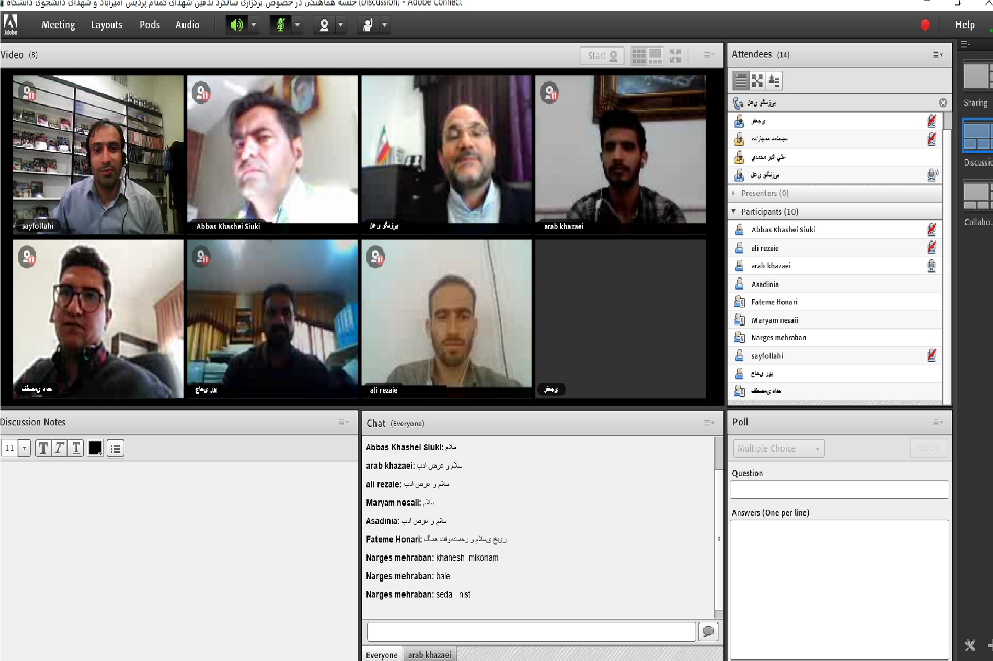 در ادامه این نشست اعضای حاضر در جلسه به بیان نظرات و پیشنهادات خود در خصوص برگزاری هرچه بهتر سالگرد تدفین شهدای گمنام پردیس امیرآباد پرداختند. پس از اظهار نظر حاضرین در جلسه، مقرر شد مراسم سالگرد تدفین شهدای گمنام پردیبس امیرآباد،بصورت باشکوه و با توجه به شرایط موجود بصورت مجازی برگزار شود.