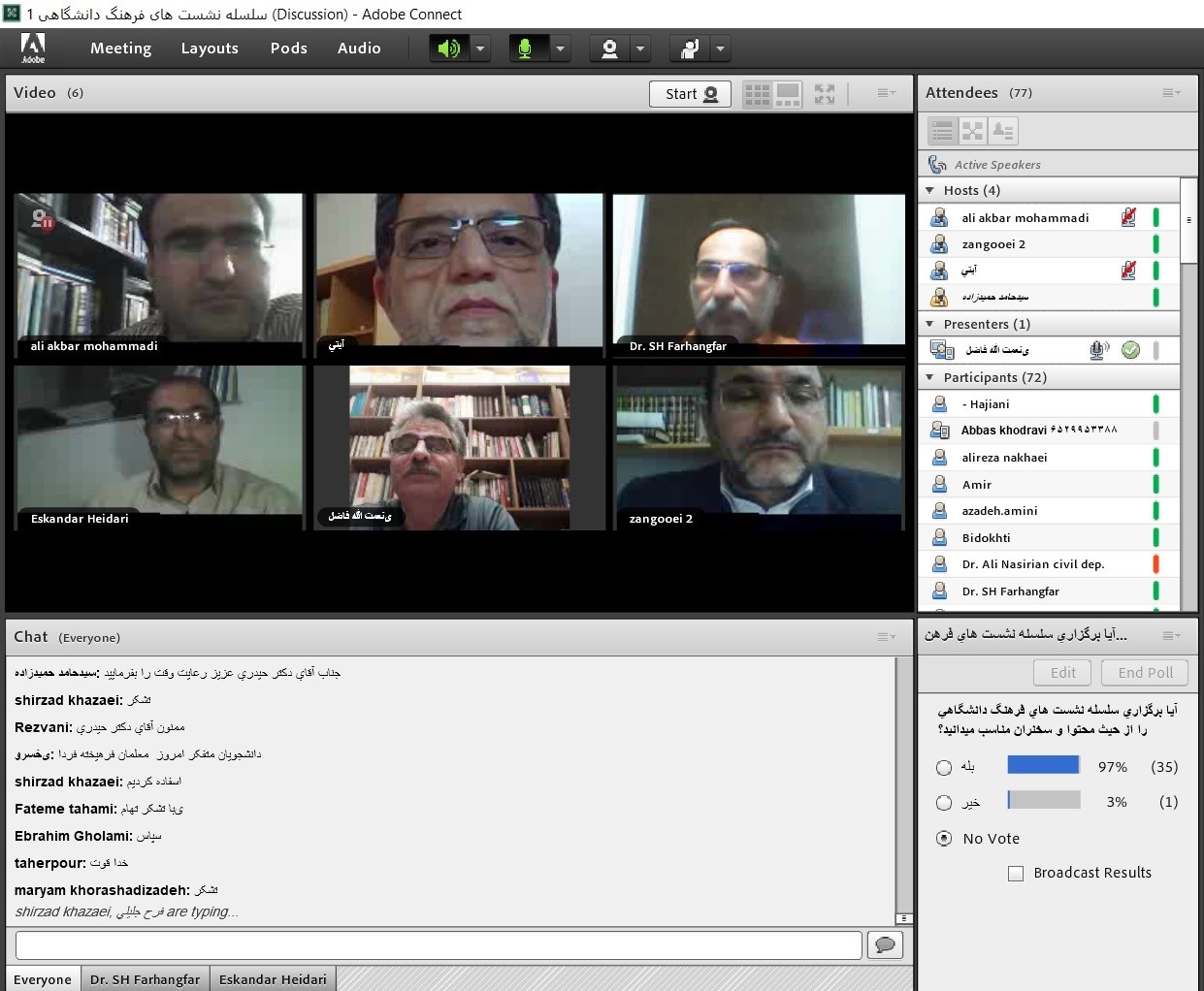 هشتمین نشست از سلسله نشست های فرهنگ دانشگاهی، شامگاه چهارشنبه 29 بهمن ماه و بصورت مجازی برگزار شد.