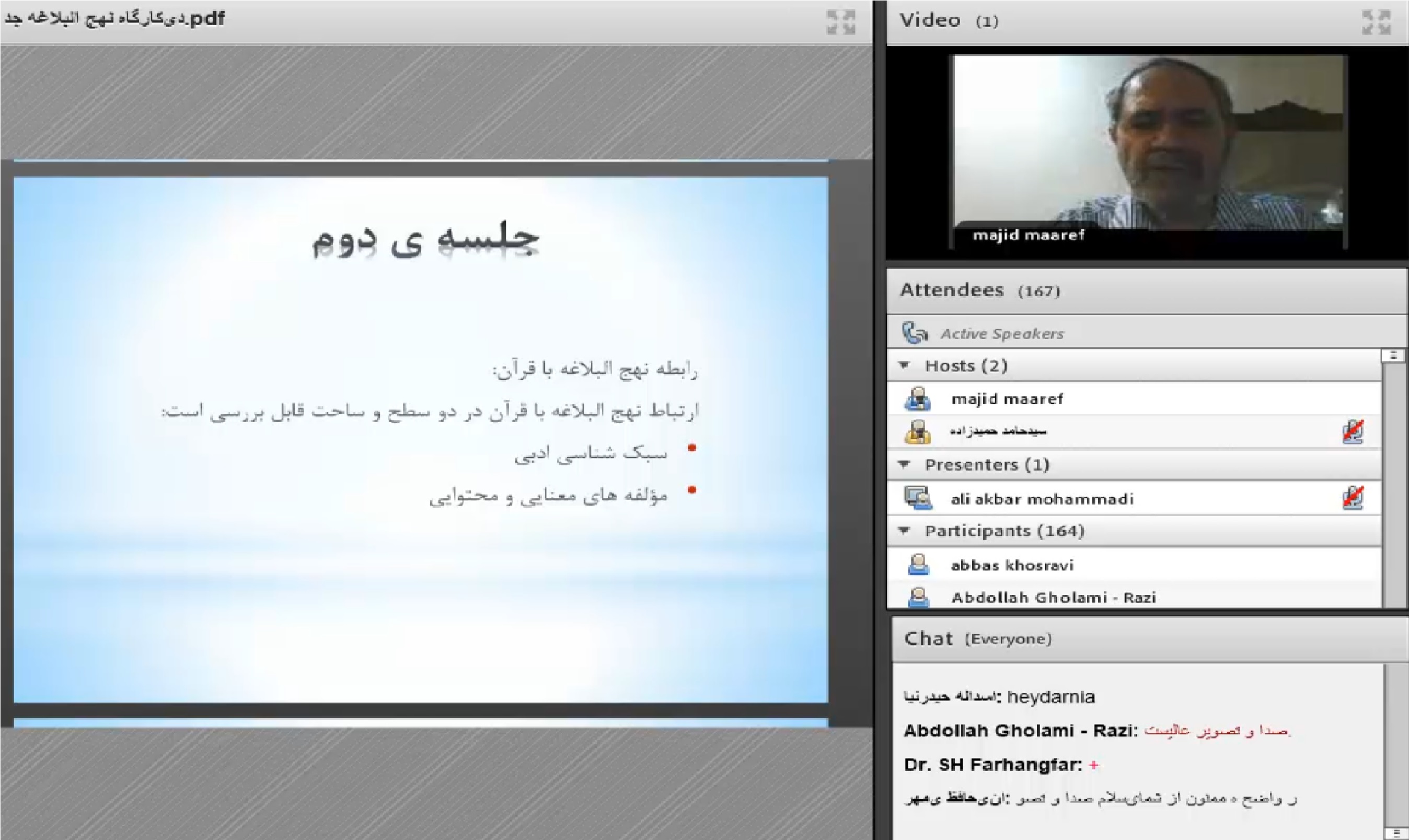 دومین نشست از سلسله نشست های معاونت فرهنگی و اجتماعی با عنوان (( ارتباط قرآن و نهج البلاغه)) شامگاه چهارشنبه 8 اردیبهشت ماه و با حضور دکتر معارف، استاد تمام دانشگاه تهران برگزار شد.