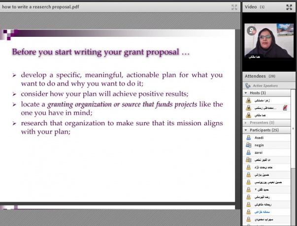 دوره آموزشی شیوه نگارش پیشنهاده طرح پژوهشی به منظور جذب گرنت بین المللی بصورت مجازی برگزار شد.