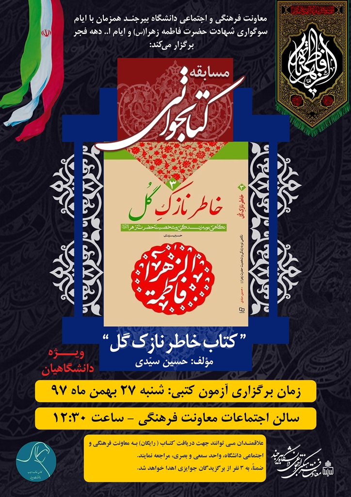 فراخوان ثبت نام در مسابقه کتابخوانی" خاطر نازک گل" ویژه ایام شهادت حضرت زهرا(س)