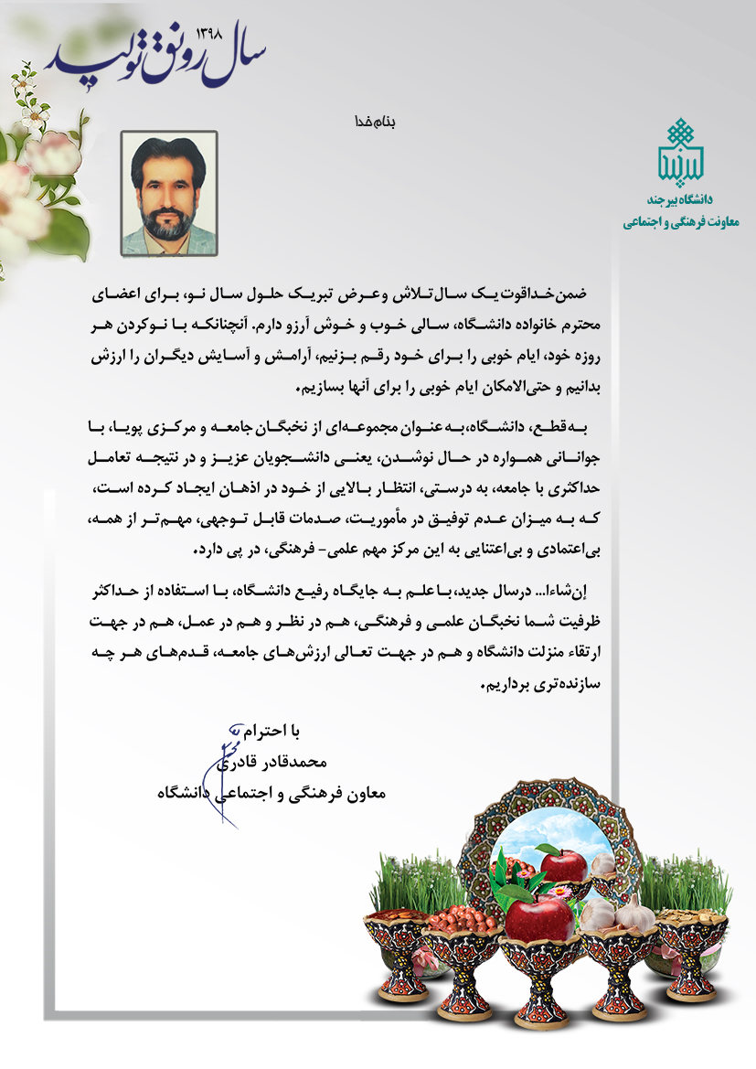 پیام تبریک معاون فرهنگی و اجتماعی دانشگاه به مناسبت سال جدید