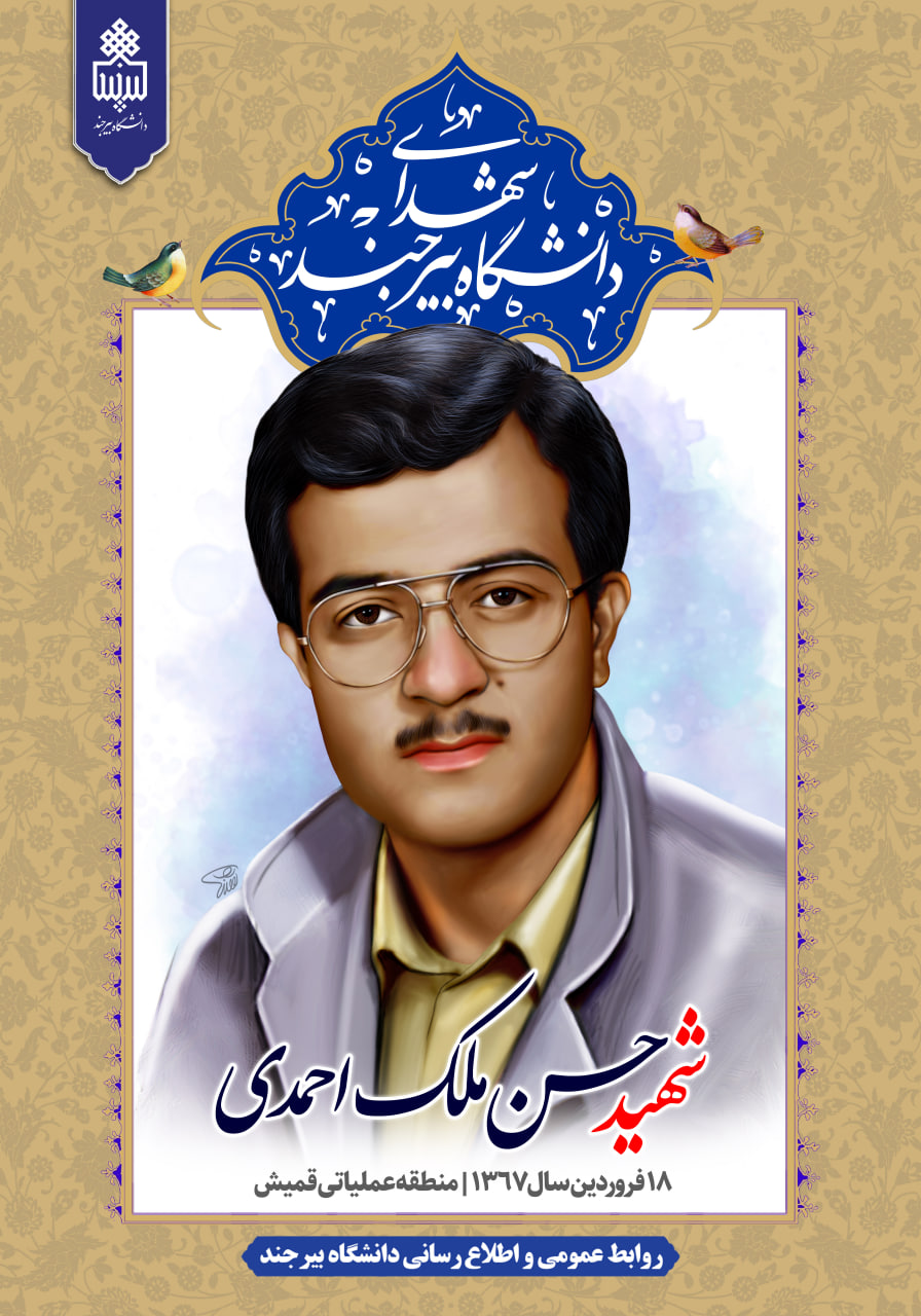 دانشجوی شهید حسن ملک احمدی در سال 46 در شهرستان شاهرود متولد شد. وی دانشجوی مقطع کاردانی رشته امور زراعی دانشگاه بیرجند بود که در تاریخ 18اردیبهشت سال 67 در منطقه عملیاتی قمیش به شهادت رسید. وی در منزل مادر بزرگ بدنیا آمد. دوره تحصیل ابتدایی شاگردی ممتاز و از نظر اخلاق، تربیت و تحصیل بی نظیر و در امور دینی سرآمد دیگر فرزندان خانواده ، وی دوره متوسطه را در شاهرود و از شاگردان ممتاز دبیرستان دکتر شریعتی بود.
