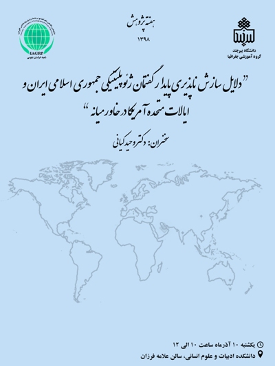 به مناسبت هفته پژوهش سخنرانی علمی با عنوان "دلایل سازش ناپذیری پایدار گفتمان ژئوپلیتیکی جمهوری اسلامی ایران و ایالات متحده آمریکا در خاورمیانه" روز یکشنبه 10 آذر ماه 1398 توسط دکتر وحید کیانی، عضو هیأت علمی گروه جغرافیا، در محل تالار علامه فرزان دانشکده ادبیات و علوم انسانی برگزار شد.