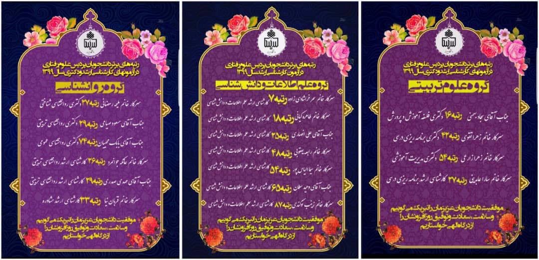 اعلام رتبههای برتر دانشجویان پردیس علوم رفتاری