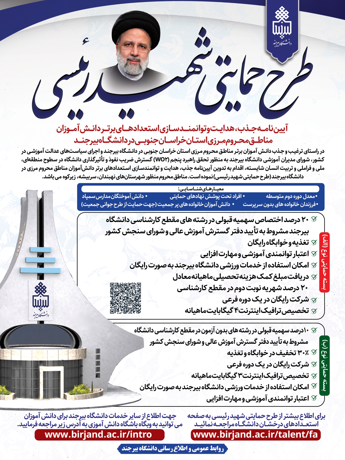 طرح حمایتی شهید رئیسی ۲۰ شهریور ۱۴۰۳ | ۱۳:۲۱ کد : ۲۸۷۱۶ دانشگاه بیرجند ۱ آیا می دانید ارسال به دیگران نام شما ایمیل شما ایمیل دریافتکننده ارسال انصراف تعداد بازدید:۵۱۰